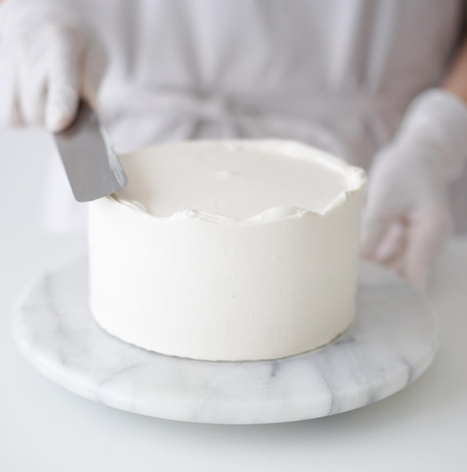 - ケーキの組み立てと下塗り