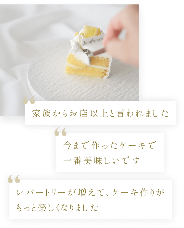 ご家庭でも満足度の高いショートケーキが作れるようになる」