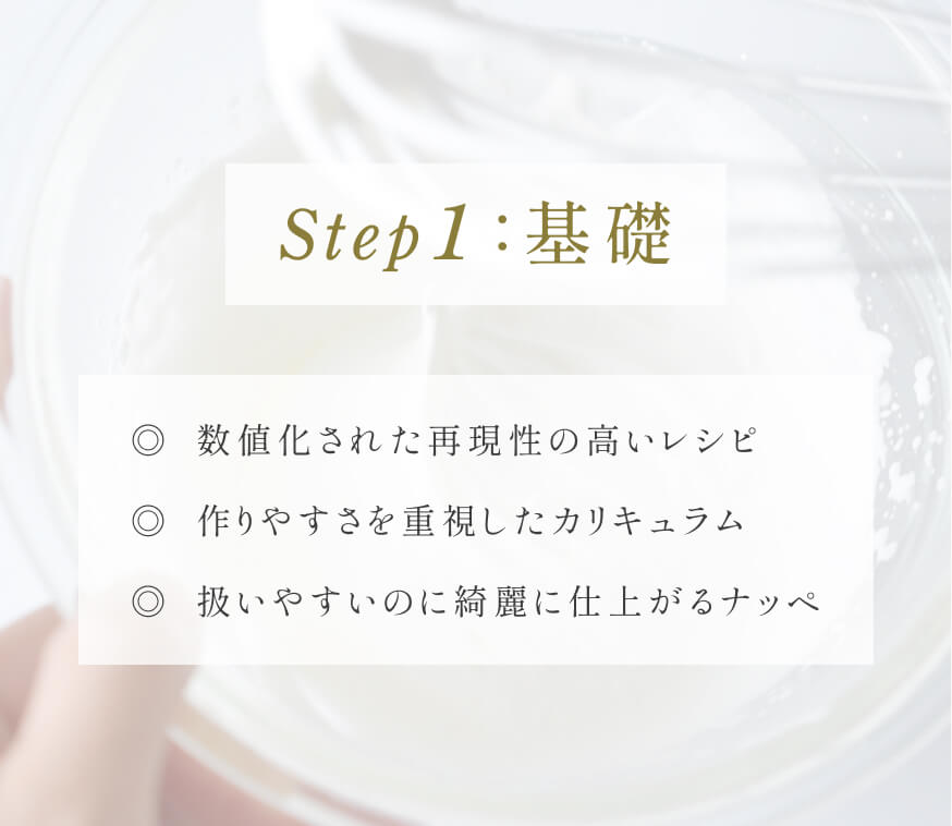 初心者さんでも扱いやすいクリームのかたさで、綺麗にナッペする方法をお伝えします。このStep1:基礎をしっかりマスターすることで、Step2:応用の仕上がりが格段に良くなります。