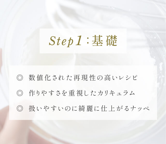生地の比重や、クリームの泡立て具合など、個人で見極めの差が生じやすい部分は全て数字でお伝えしています。