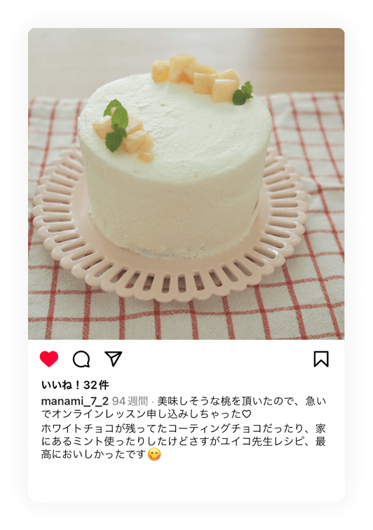 cadeauのカリキュラムは、ご家庭での作りやすさを大切にしているので、 教材通りに進めるだけで綺麗で美味しいケーキを仕上げることができます。