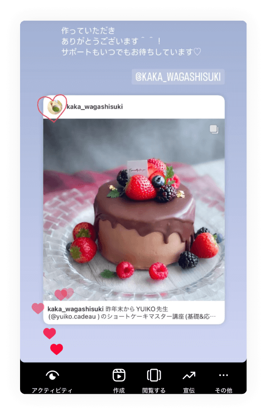 初心者さんでも挑戦しやすいナッペと、様々なデコレーションをご紹介しているので、ケーキの美味しさはもちろん美しさの表現方法も学べます。
